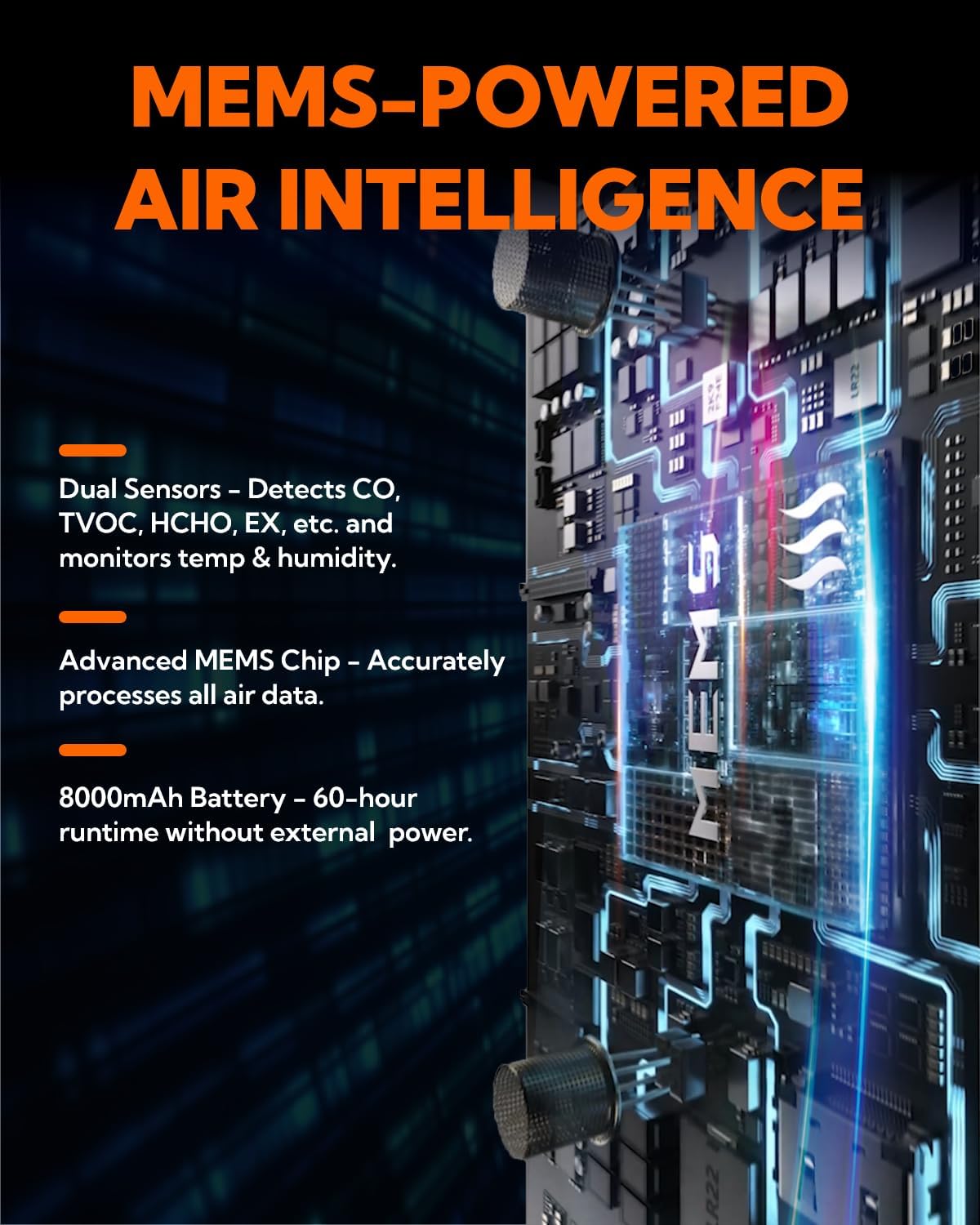 - Your Guardian for Indoor & Outdoor Air: Utilizes MEMS sensors , CE/FCC-approved, and UL 2034-certified for carbon monoxide detection. With compliance to international safety standards, it delivers reliable air quality monitoring for complete peace of mind.