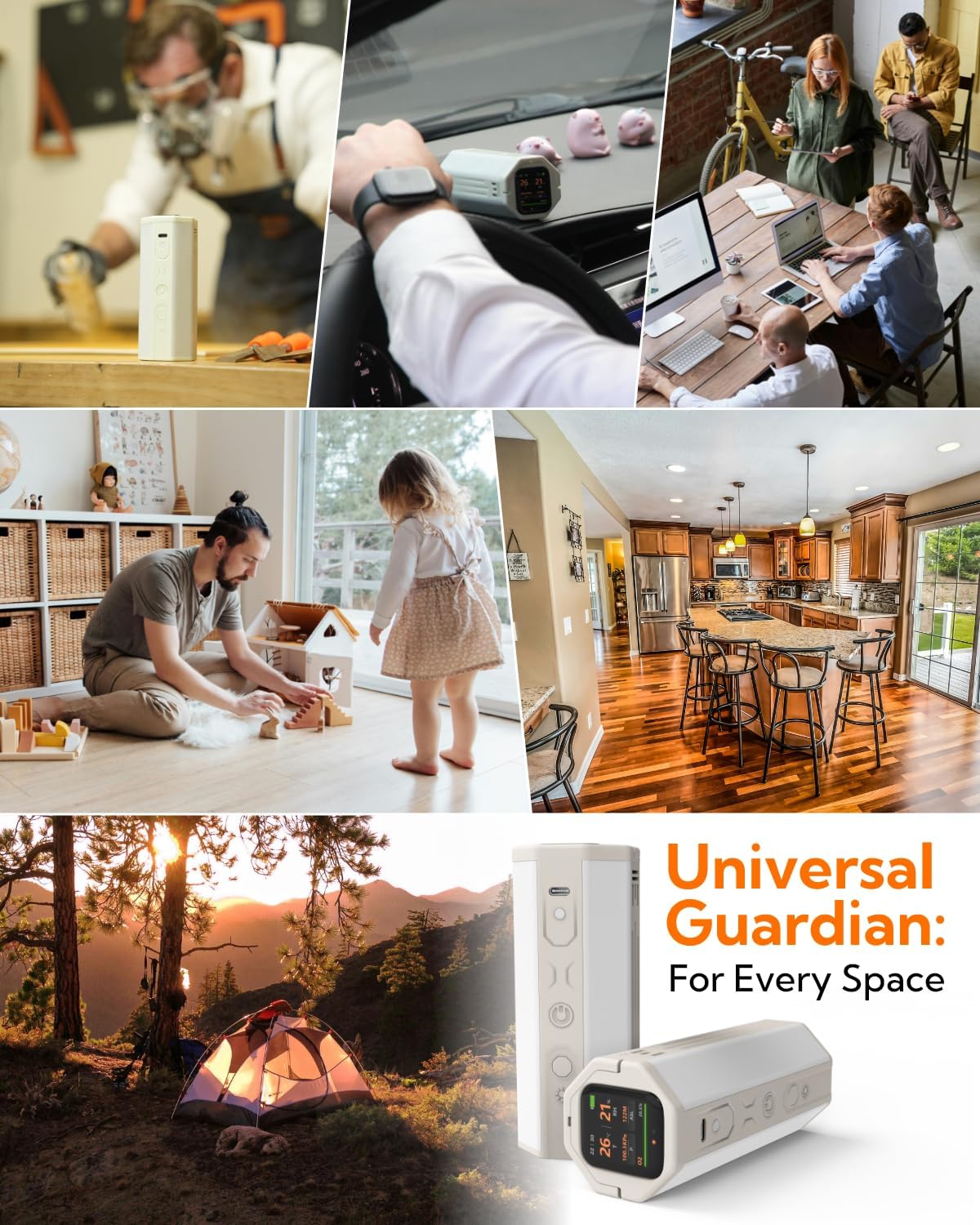 - Ultra-Portable & Versatile Design: Weighing just 300g with a compact build, this air monitor features a magnetic mounting module and a retractable hook for easy attachment to backpacks, belts, refrigerators, or metal surfaces. Suitable for both indoor and outdoor environments, such as living rooms, kitchens, offices, car interiors, and other scenarios, without compromising functionality.